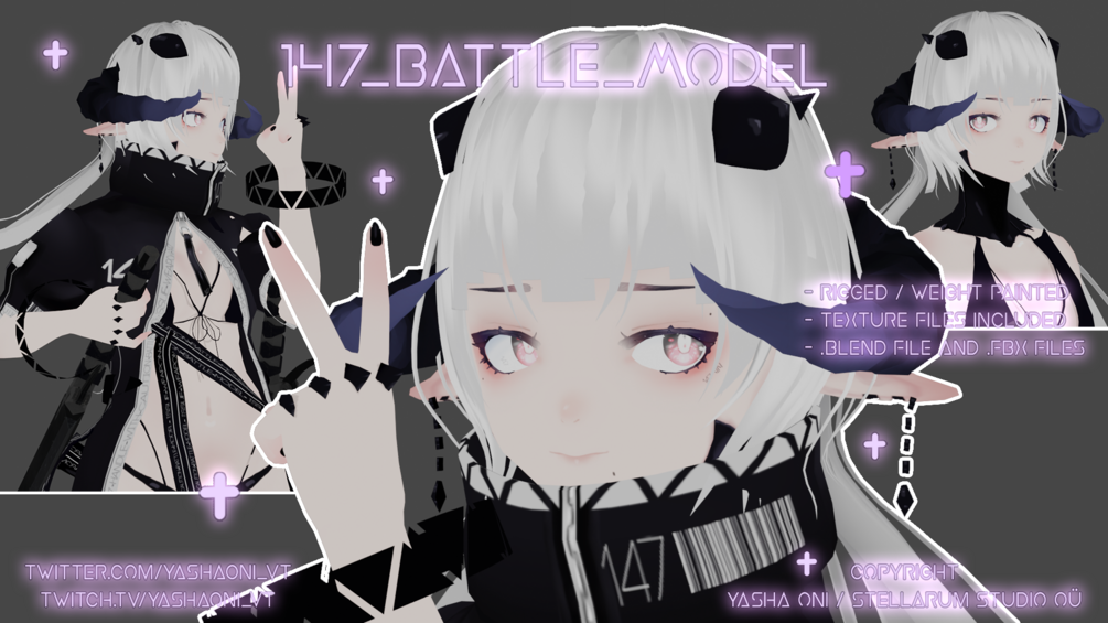 DO give credit when assets are used to the original creator (@YashaOni_VT Twitter / Gumiroad link)