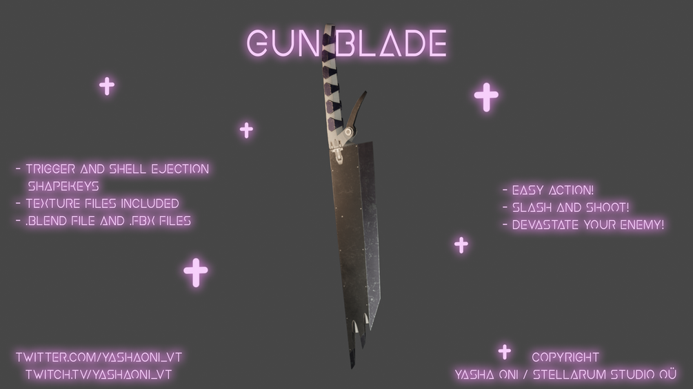Vtuber / Vrchat model + Gunblades! - .FBX, .blend, unitypackage, .vsfavatar