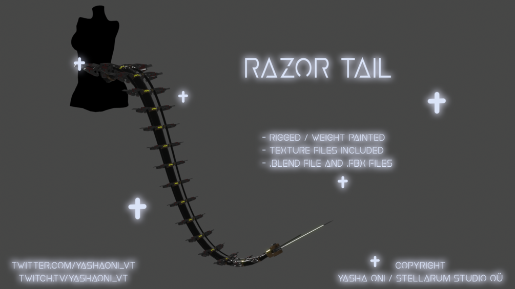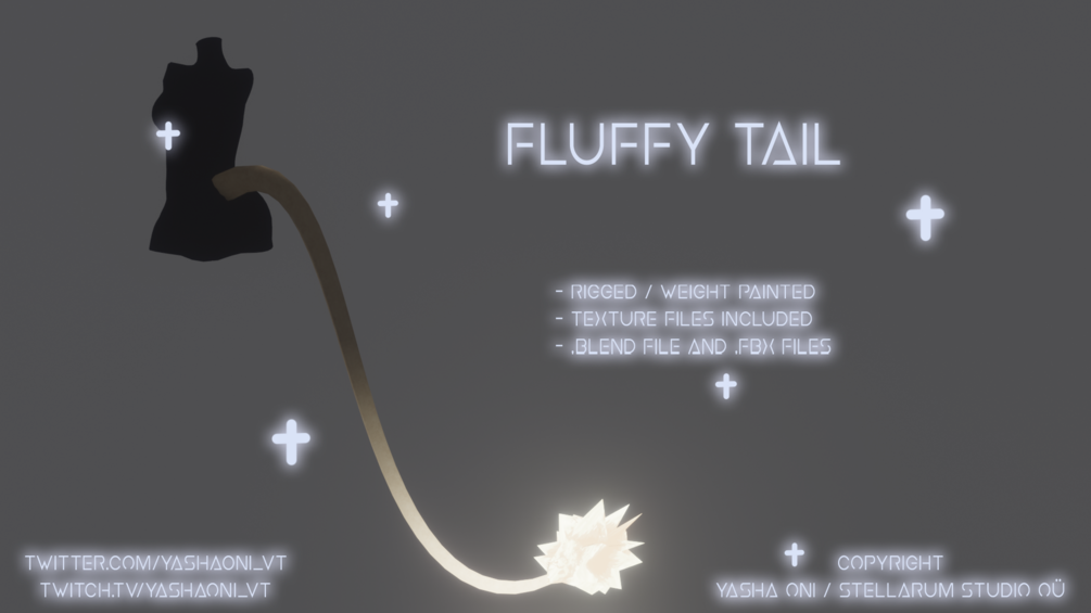 Variety of tails! - Rigged / weight painted - Texture files included - .blend, .fbx and Unitypackage files TOS: DO NOT RESELL under any circumstances DO NOT claim as your own DO NOT take credit for the assets DO NOT share the asset files DO NOT use on models to sell --- DO give credit when assets are used to the original creator (@YashaOni_VT Twitter / Booth link) FEEL FREE to edit the texture colours in any way! Please enjoy the assets! β