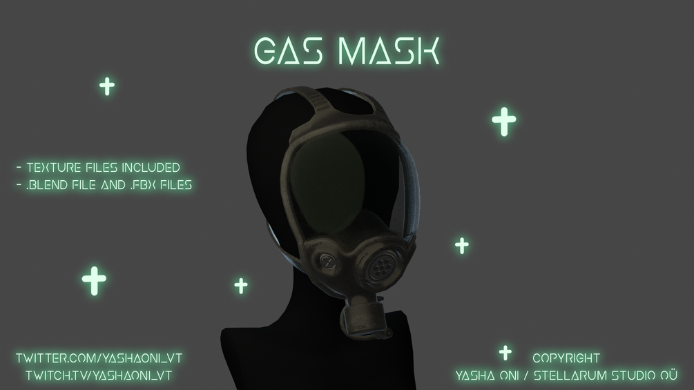 Visor Gas Mask - Texture files included - .blend, .fbx and Unitypackage files TOS: DO NOT RESELL under any circumstances DO NOT claim as your own DO NOT take credit for the assets DO NOT share the asset files DO NOT use on models to sell --- Commercial use OK ! (Using on models to stream with, content creation etc.) DO give credit when assets are used to the original creator (@YashaOni_VT Twitter / Booth link) FEEL FREE to edit the texture colours in any way! Please enjoy the assets!